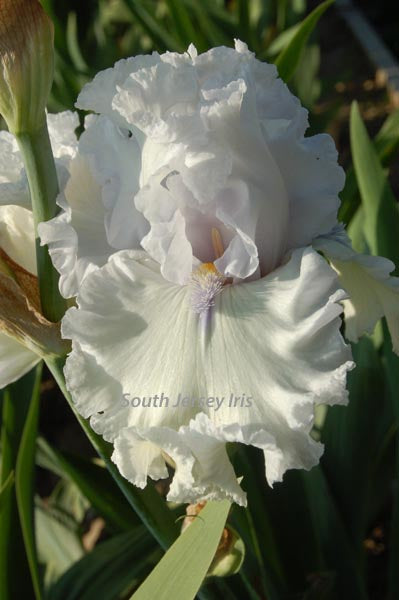 Keith Keppel, 2020. TB; ht approx 40"; blooms midseason. Standards white with faint blue cast; falls white; beards jonquil, ends light blue. Honorable Mention 2022.