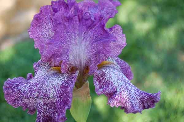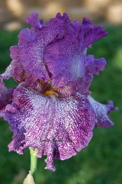 Richard Tasco, 2013. TB; Ht approx 33"; blooms midseason and reblooms. Standards are red pansy-purple dotting on white ground; falls are the same as standards becoming more solid towards edges; beard hairs are based white, tips golden-yellow in middle and throat, purple- white at end; sweet fragrance; lightly ruffled. Honorable Mention 2015, Award of Merit 2017, Wister Medal 2019.