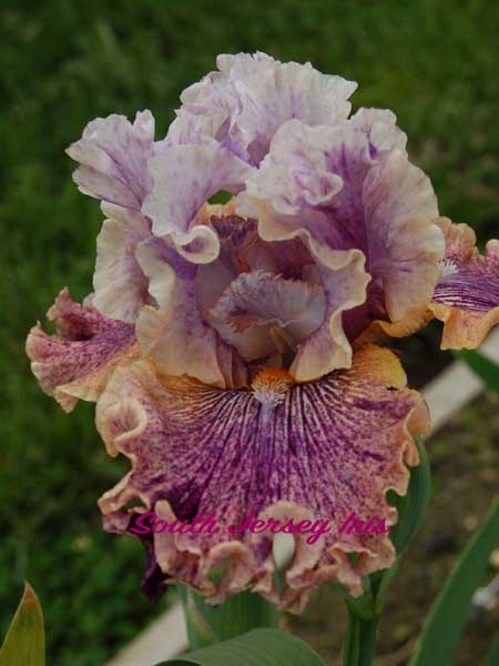 Paul Black, 2019. TB; ht approx 37"; blooms midseason to late. Standards white, randon splashes of red-violet; falls white center to cantalope towards edge, center randomly lined, sanded and streaked red-purple; beards based white, tips tangerine; slight musky fragrance. Honorable Mention 2023.