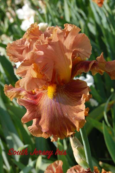 Tom Burseen, 2020. TB; ht approx 36"; blooms midseason. Standards tan blended red-brown; falls washed and streaked brown-red on tan; beards saffron yellow; ruffled; pronounced spicy fragrance.