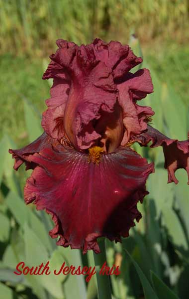 Paul Black, 2016.  TB; ht approx 35"; blooms early to midseason.  Standards rose-ruby, tan-ruby at base, caramel ridge and crest; falls velvety dark oxblood, narrow tan-ruby band; beards dark caramel gold; slight musky fragrance.  Honorable Mention 2018.