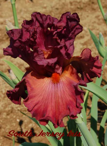 Keith Keppel, 2018. TB; ht approx 34"; blooms early midseason. Standards rubient red; falls red-maroon toward edge, orange-brown influence overall; beards scarlet-vermillion in throat and middle, terra-cotta at ends; purple based foliage. Honorable Mention 2021.