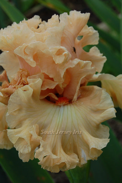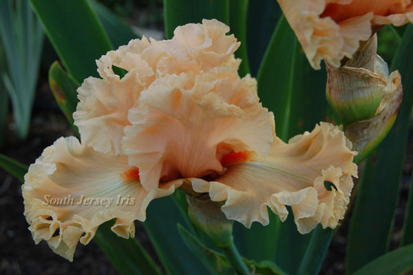 Thomas Johnson, 2014.  TB; ht approx 34"; blooms midseason.  Standards and falls peach; beards orange; Sweet fragrance, ruffled.  Honorable Mention 2016, Award of Merit 2021.