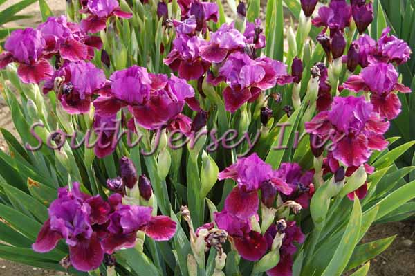 S. violet purple; style arms lighter violet purple; F. ruby red, edged lighter; beards oxblood red; lightly ruffled; pronounced sweet fragrance. Honorable Mention 2006.