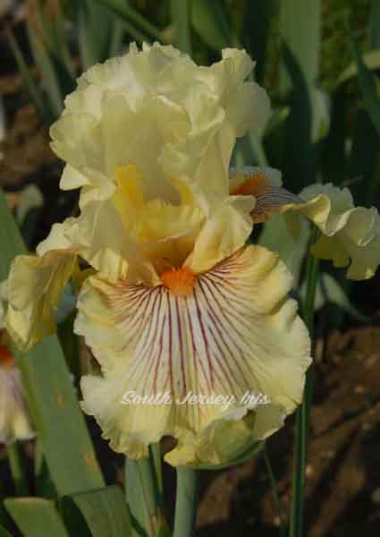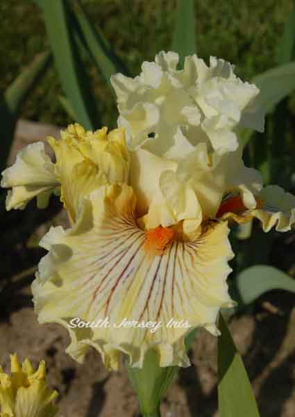 Richard Tasco, 2020. TB; Ht approx 35"; blooms late midseason. Standards yellow; falls yellow with burgundy veins; beards tangerine; sweet fragrance.