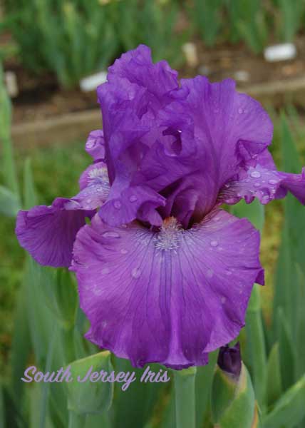 Lionell Austell, 2012. TB; ht approx 40"; blooms midseason. Standards cream, lavender-blue midribs, some light yellow around upper standards; style arms cream; falls lavender-blue; beards tangerine, big and wide; slight fragrance; ruffled.