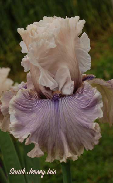 Keith Keppel, 2010. TB. Blooms midseason. Ruffled and laced. Standards pinkish grey-white. Falls pinkish lavender-grey white overlaid heliotrope grey to lobelia violet. Beards shrimp pink, light blue at end. Ht approx. 36". Award of Merit 2014, Wister Medal 2016, American Dykes Medal 2018.