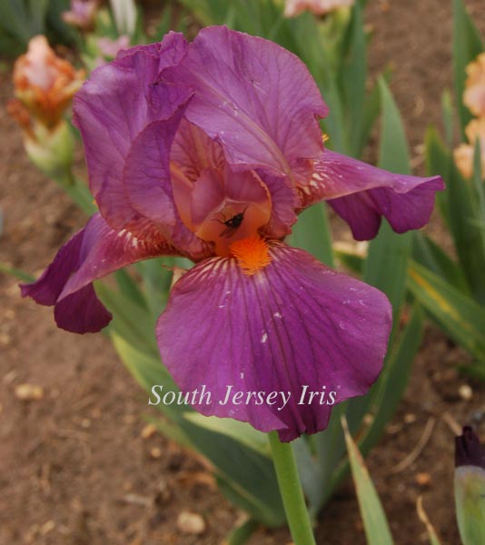 Lynda Miller, 2016. MTB; ht approx 22"; blooms early midseason. Standards deep orchid to light orchid at midribs; falls same, few pink lines around beard; beards tangerine. Honorable Mention 2019.