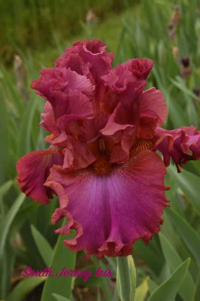 Thomas Johnson, 2016.  TB; ht approx 36"; blooms early.  Standards magenta blending to darker rose; falls light rose-maroon with blue cast; beards dark mustard, tips brown.  Sweet fragrance.  Honorable Mention 2018, Award of Merit 2021.