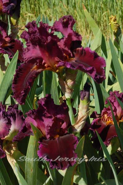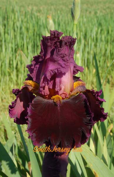Tom Burseen, 2018. TB; ht approx 34"; blooms midseason to late. Standards tan, washed wine; falls dark burgundy-wine washed lighter at edges; beards based bronze-gold, tips wine; fine ruffled and laced; slight sweet fragrance.