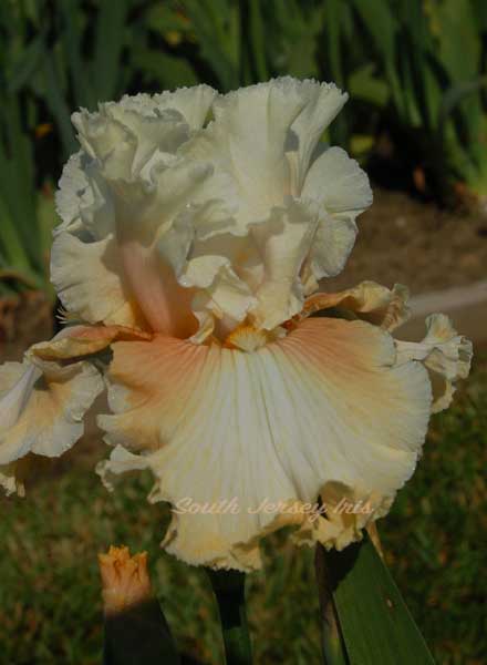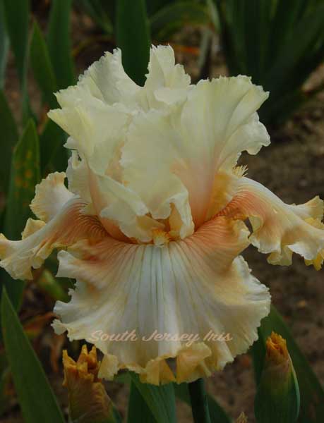 Tom Burseen, 2022. TB; ht approx 35"; blooms early to midseason. Standards white with poppy pink base; falls white, mexican tan shoulders, textured veins; beards orange in throat and middle, white ends; ruffled; pronounced sweet fragrance.
